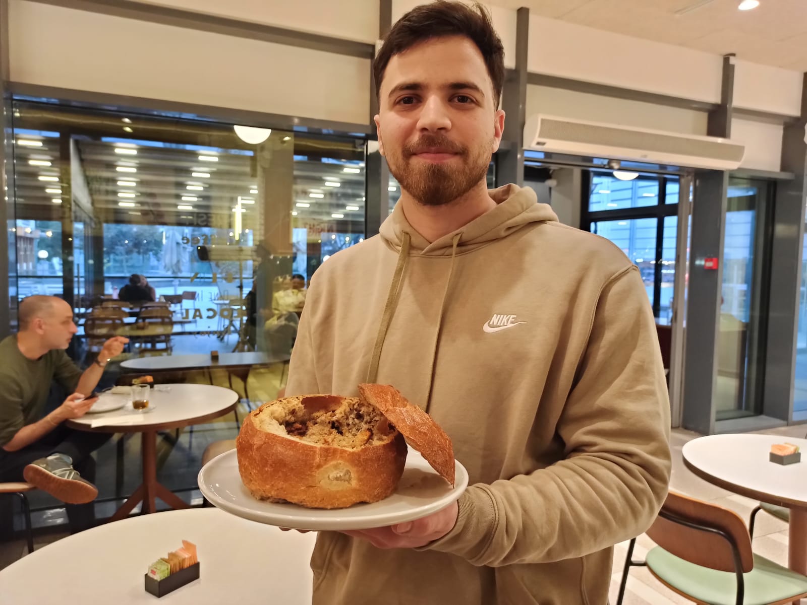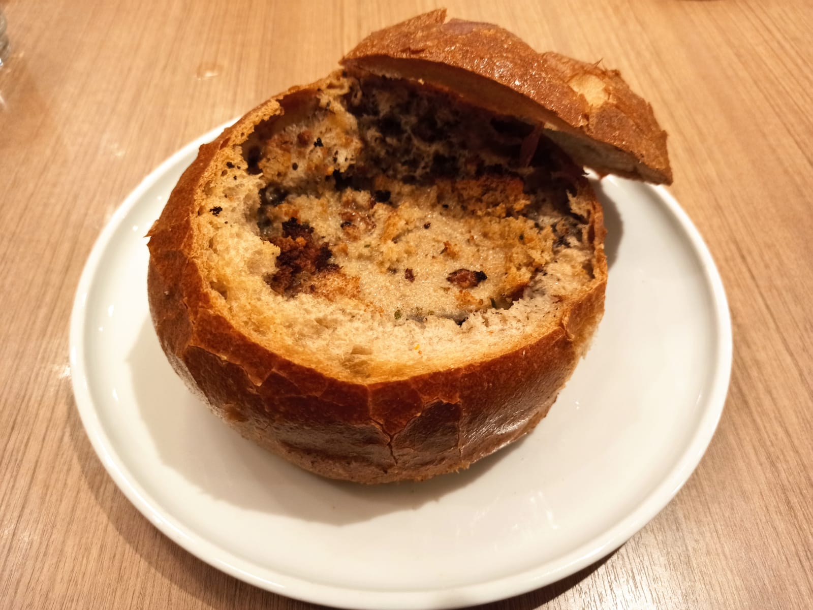אבל... המרק נספג כמעט לגמרי בתוך הלחם, ובעצם אכלתי עיסת לחם בטעם פטריות. מבחוץ הלחם היה קריספי וטעים, אבל השילוב לא ממש הצליח לטעמי. בכל אופן, שותפתי לארוחה דווקא כן אהבה. אז זה תיקו.