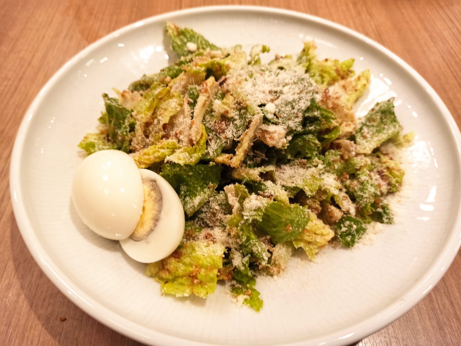 אז ככה: החציל הגיע עם לחמניה קטנה וטרייה, והוא היה אחלה. הסלט זכה לשיפור משמעותי בזכות המלצרית ולרי, שהביאה לנו גם שמן זית וגם רוטב קיסר שמבוסס על מיונז. השמן והרוטב היטיבו עם הביצה שהכיל הסלט ועם הפרמזן שפוזר עליו בשפע.