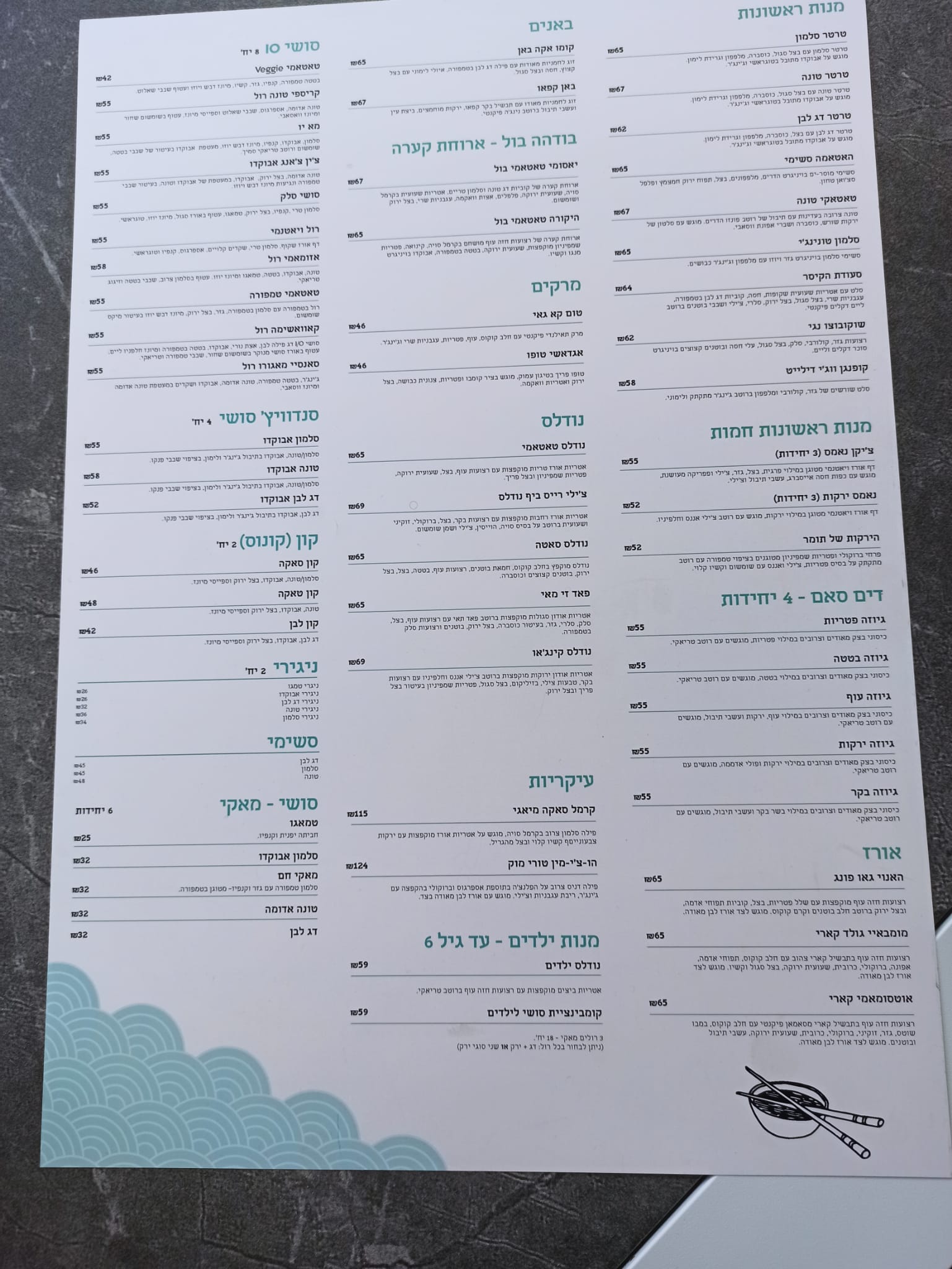 התפריט כולל גם דים סאם, נודלס, ארוחות קערה, מוקפצים ועוד. יש היצע גם לטבעונים, צמחוניים, נשים בהריון ומי שנמנע מגלוטן. ערן, שאני מיודד איתו כבר 15 שנים לפחות, נראה נינוח ושליו מתמיד. הוא קיבץ לכאן את מיטב העובדים שלו מהעבר. הדר חובב, מי שניהל את מסעדת אזומאמי בדניה שהוא היה שותף בה, משמש כיד ימינו.