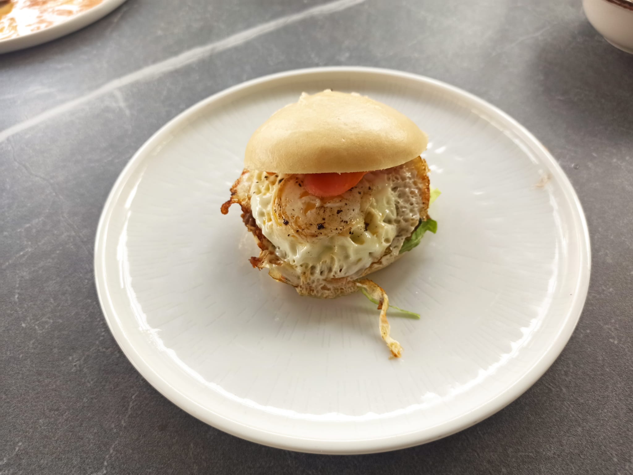 ארוחה כזו היא גם בריאה וגם קלילה. זו היתה שעת צהרים, ואפשר לחזור לעבוד מבלי שהעייפות תפיל אותך. אלא שערן המליץ מאוד שאטעם גם באן כלשהו. בחרתי במנת באן קפאו, שמורכבת מזוג לחמניות באן עם תבשיל בקר קפאו וביצת עין. גם ערן וגם מי שהתלוותה אליי כבר היו מלאים ולא רצו להשתתף איתי. אז הכינו לי רק חצי מנה, ששמחתי להכיר, כי בדרך כלל אני לא מת על לחמניות באן.